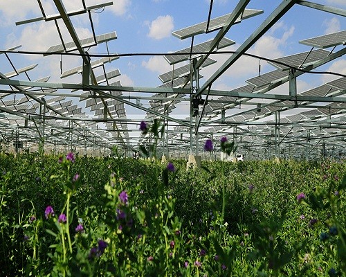 OFweek太阳能光伏网讯:传统模式下的光伏电站建设,由于光伏板架设相对低矮,大片土地未能充分利用,然而,初秋的银川滨河新区宁夏宝丰集团3吉瓦光伏发电项目现场,给人们展示了另外一番景象:离地约2米高的光伏板下面,昔日缺青少绿的荒沙地上,大片紫花苜蓿绿浪翻滚,春天新栽种的枸杞生机勃勃,形成了“光伏能源—农业种植—观光旅游”一体化新型特色产业。