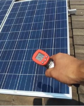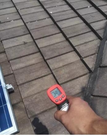 我们测得组件下没有被太阳直射的屋面温度为48度。