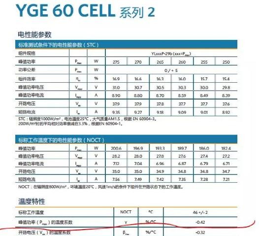 可以看出,组件的峰值功率温度系数为-0.42,因此,峰值功率此时为最大功率损失约为的16%。