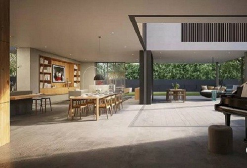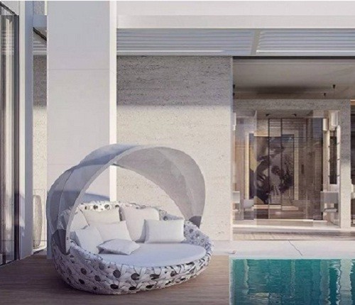 这款别墅仍旧将玻璃墙进行大范围使用,而室内与室外泳池的连接也最大限度运用了圆柱进行搭配,既节省空间又提高了观赏性。同样的,在屋顶仍然利用了太阳能发电系统进行家庭能源供给。