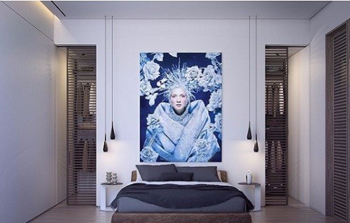 另一个房间相对简单很多,而充满蓝色色调的人像画给整个房间增添了色彩感。