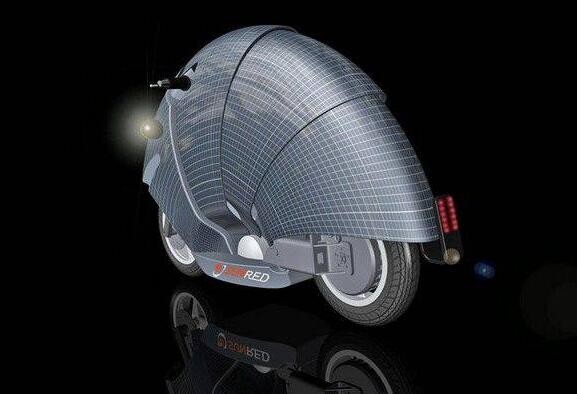 这是一辆通过太阳能充电的摩托,外形模仿穿山甲设计,充电只需把这层太阳能拉出在太阳底下就可以了。