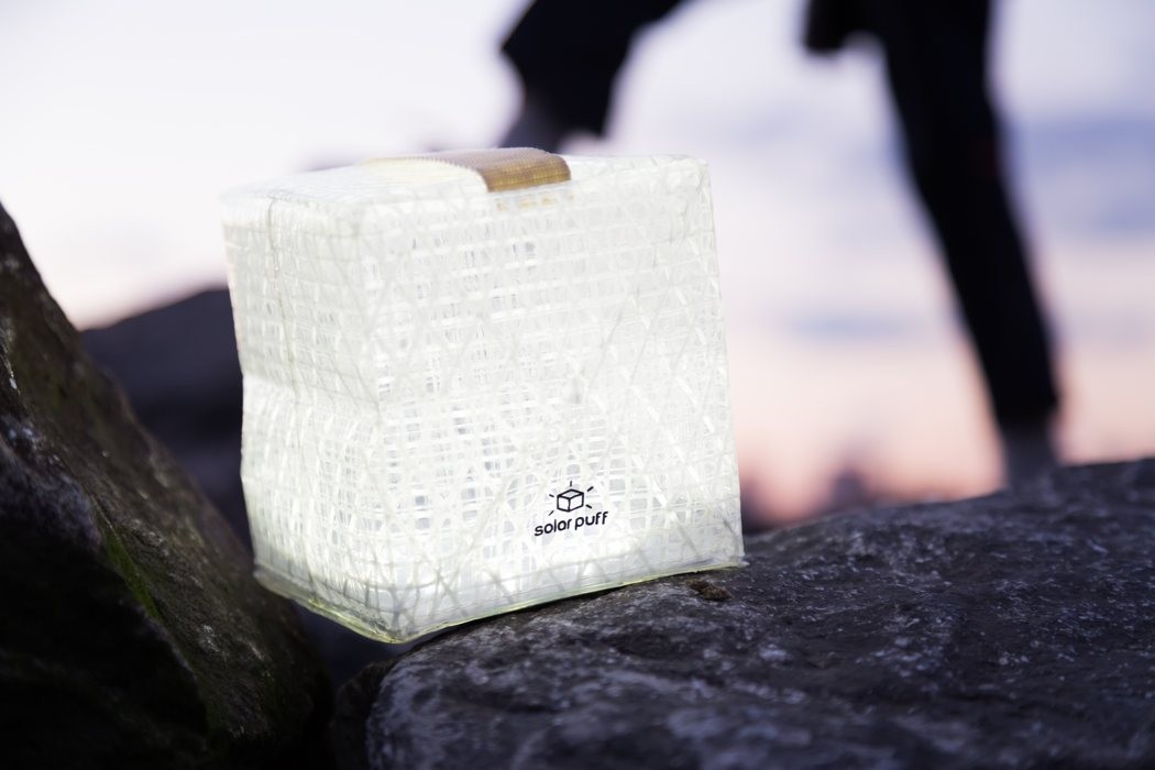 SolarPuff 作为一款新发明的太阳能灯,看起来更像一款可提的小灯笼。由于SolarPuff 的制成材料是高性能的织物,所以本身柔韧性很高,可折叠便于携带。SolarPuff 主要由一个光伏太阳能电板,10 个LED灯和一块锂离子电池构成。作为一款太阳能灯,只要在太阳下充电5个小时,就可以使用5-8 个小时;如果充电8个小时,则可以使用8-12个小时。除此之外,它还具有良好的耐用性、耐水性和可回收性。这就意味着SolarPuff 不仅能够可以禁起多次折叠甚至还能漂浮在水面上。