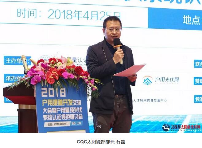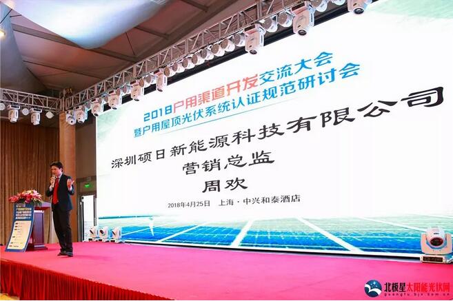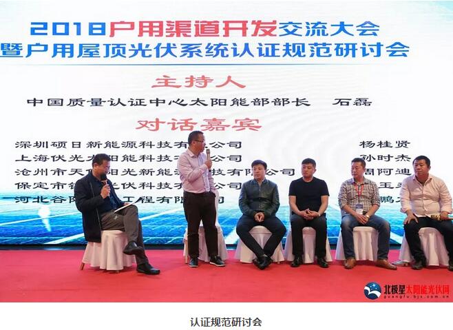 为促进户用光伏行业合理繁荣,4月25日,由中国质量认证中心(CQC)、深圳硕日新能源科技有限公司联合主办,北极星太阳能光伏网、一起光伏学院、户用光伏网承办及上海电力学院、上海新能源人才技术教育交流中心协办的“2018户用渠道开发交流大会暨户用屋顶光伏系统认证规范研讨会”在上海正式召开,光伏行业协会、国网供电公司、光伏科研院所、分布式光伏项目投资建设企业、银行保险金融机构以及户用经销商等近500位各领域的精英参与大会,共同探讨户用光伏的标准化发展之路,为户用光伏行业的健康发展献计献策。