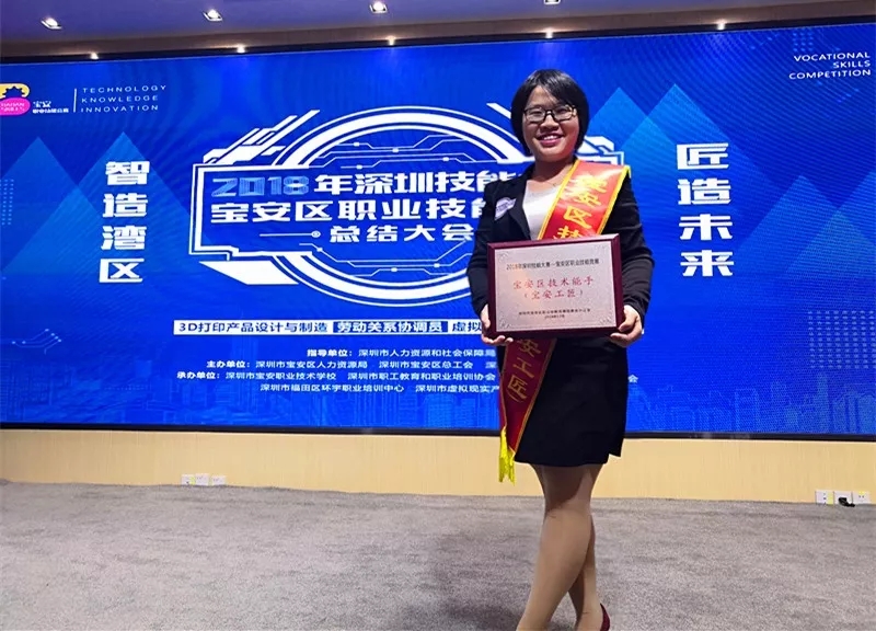 本次竞赛吸引636名技能人才参赛,历经近两个月的比拼,涌现出一批技术过硬、技艺精湛的工匠型人才。深圳市硕日新能源科技有限公司资深HR卜美尹女士也代表参与此次竞赛,并荣幸获得“宝安区技术能手(宝安工匠)”荣誉称号。