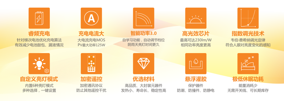 智能功率3.0:内置自动学习型智能功率算法,可根据天气情况自动调节档位,保证高亮度,在阴雨天亮灯时间更持久;