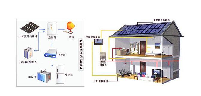 常规的光伏发电系统主要由光伏阵列、充放电控制器、储能装备或逆变器(此环节可采用逆控一体机,方便更高效)、负载等组成。光照射到光伏阵列上,光能转变成电能,光伏阵列的输出电流由于受环境影响,因此是不稳定的,需要经过转换器将其转变成稳定的电流后,才能加载到蓄电池上,对蓄电池充电,蓄电池再对负载供电。如果是并网售电,则不需要蓄电池,而是通过并网逆变器,将直流电流转换成交流电流,并到电网上进行出售。也就是说,离网型光伏发电系统必须使用到蓄电池储能,而并网型则不一定需要。
