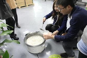 每年冬至,家家户户都有吃汤圆、水饺的习俗,为了让公司同事感受到冬至的气氛,公司特意准备了汤圆水饺。