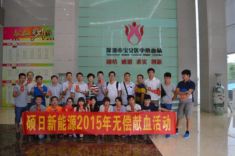 为传播无偿献血、拯救生命的公益理念,硕日新能源与区中心献血相关部门取得联系,于8月15日组织无偿献血献爱心活动,得到公司同事积极响应并参与。