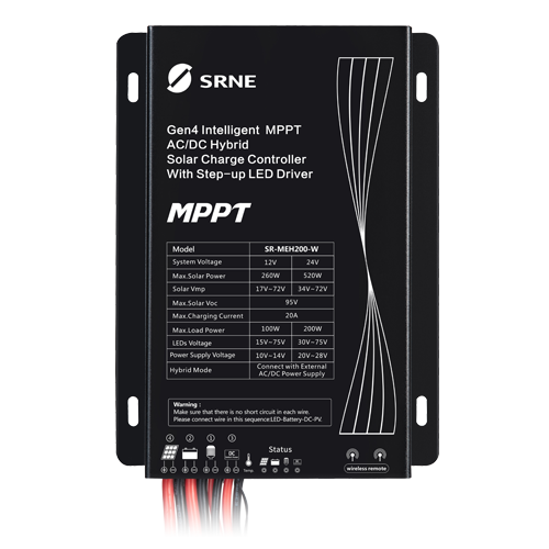MEH系列市电互补型控制器,是新一代MPPT升压控制恒流一体机,产品集成了太阳能最大功率追踪MPPT充电管理、LED升压恒流驱动、远程联网通讯等功能于一体。